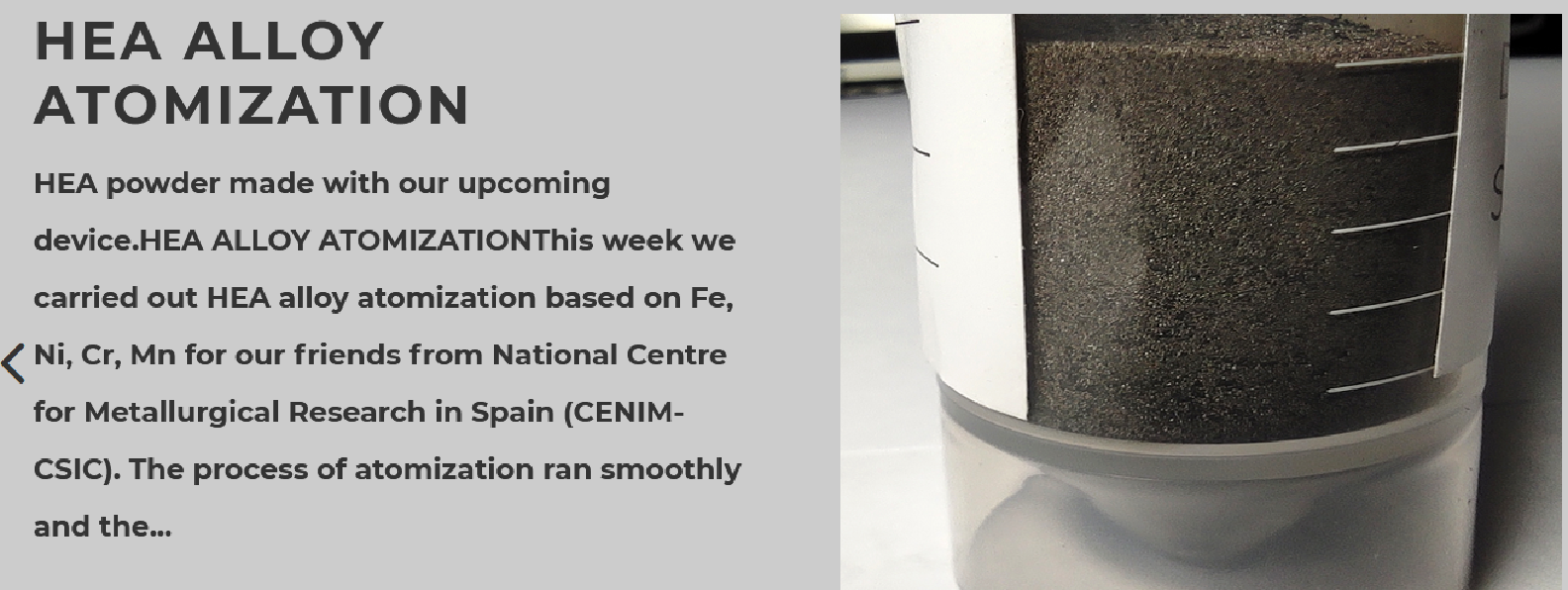 西班牙國家冶金研究中心(CENIM-CSIC) 進行了基于鐵、鎳、鉻、錳的 HEA 合金霧化制粉